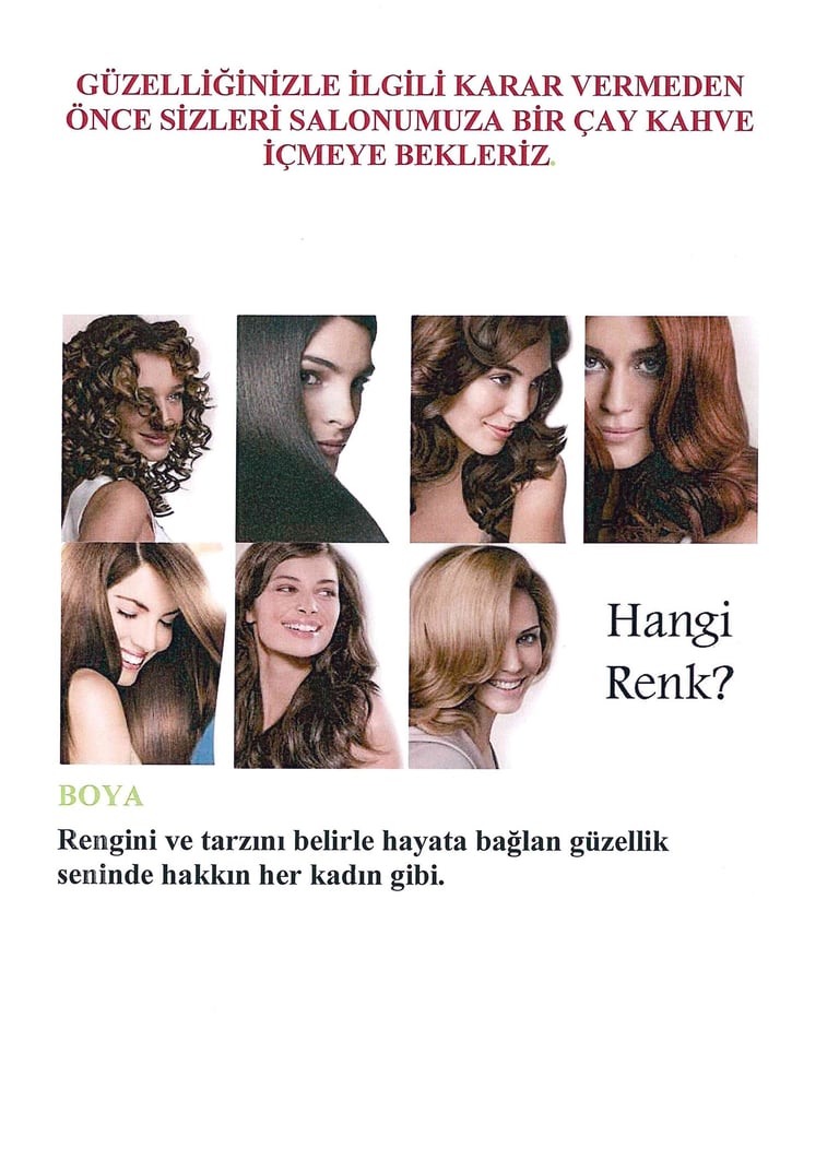 Saç kesimi, renklendirme ve şekillendirme hizmetleri sunuyoruz.
